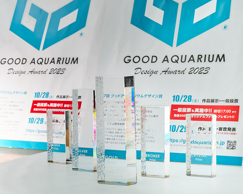 今年の「第7回グッドアクアリウムデザイン賞2023」は、3年ぶりの昨年同様にリアルな会場にて、10月28日(土)・29日(日)に作品展示を行い、審査&発表は、アクアリウム東京ネイチャー2023(新宿住友ビル)のイベント会場内にて開催いたしました。